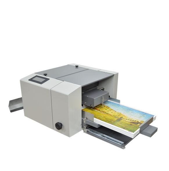 Equipo de mesa que realiza efecto barniz, sectorizado, hot standing digital y laminado perfecto, automático, casi sin la necesidad de un operario.
